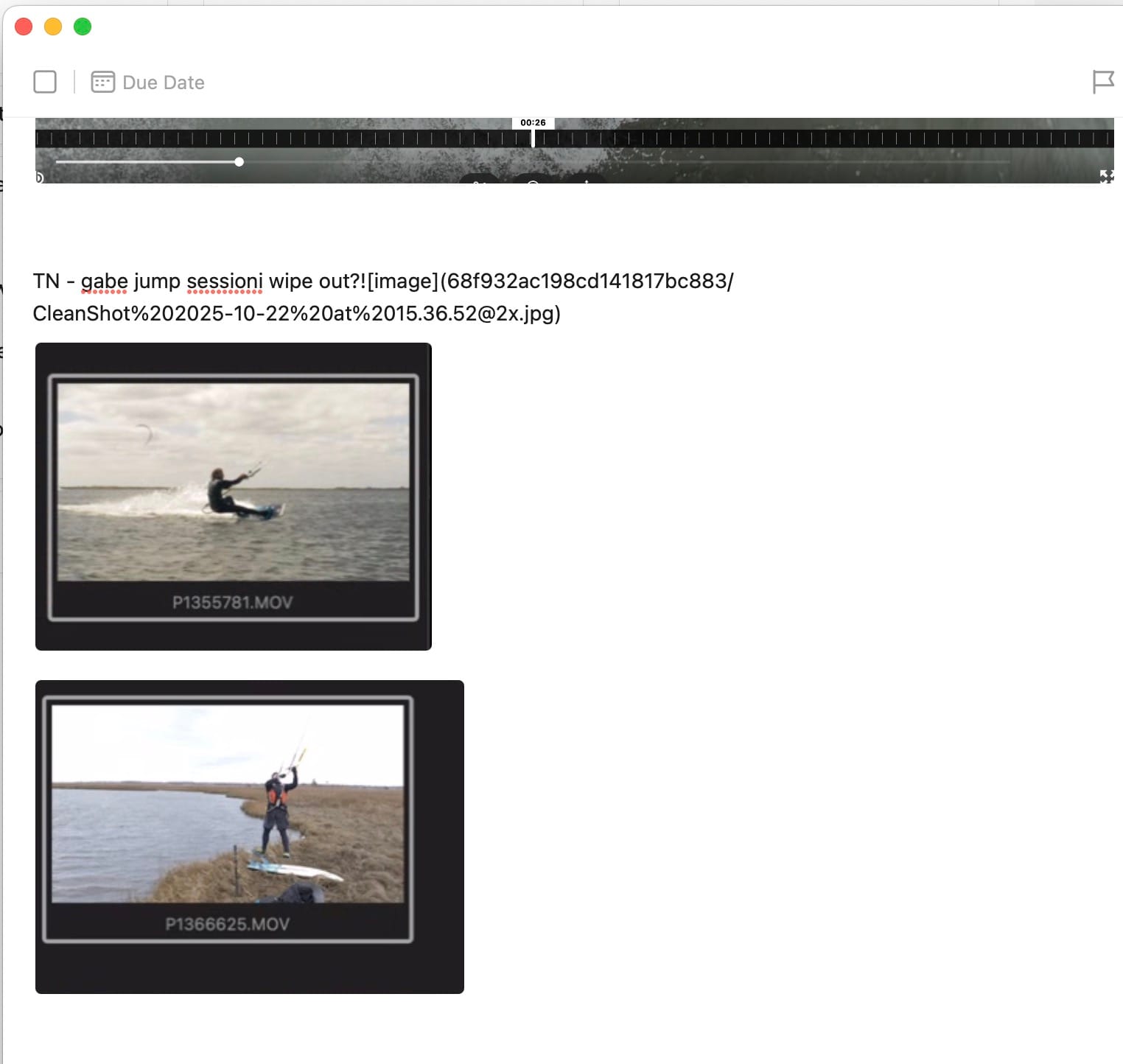 TickTick does let you attach files to a task, but that doesn’t work great when it's a 30GB video file.