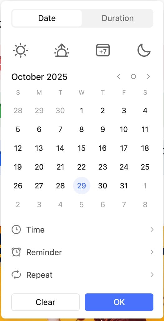 The other example is that I’d love to set and change due dates using only the keyboard in Mac. I feel like setting a date is one of the slowest parts of creating a task, so I’d like to see a keyboard only option.