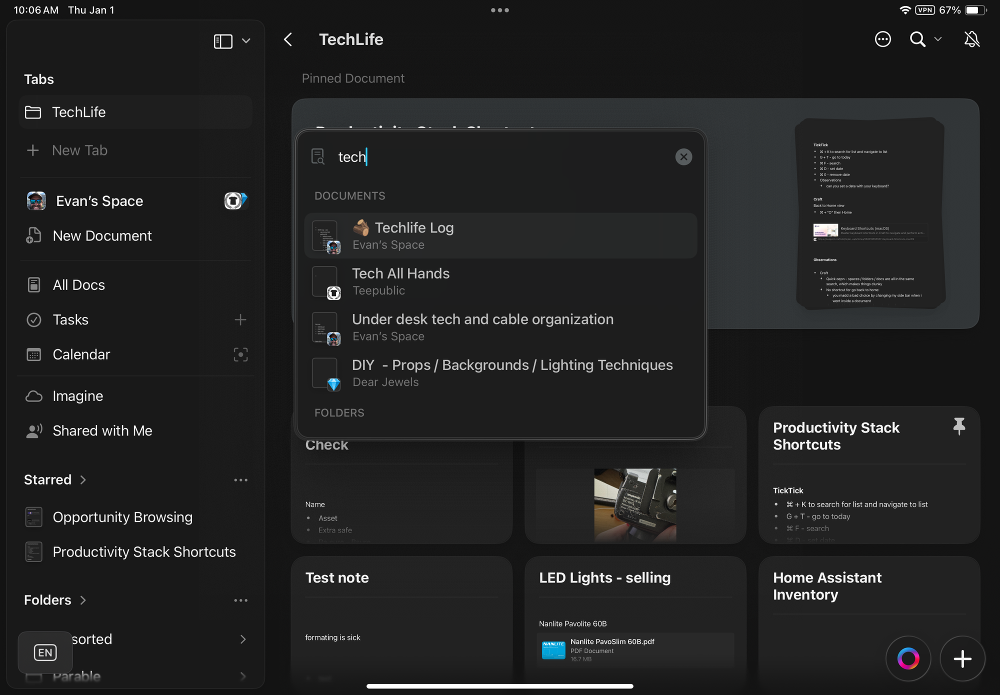 Here I’m viewing my “Techlife” folder and I click into a document.