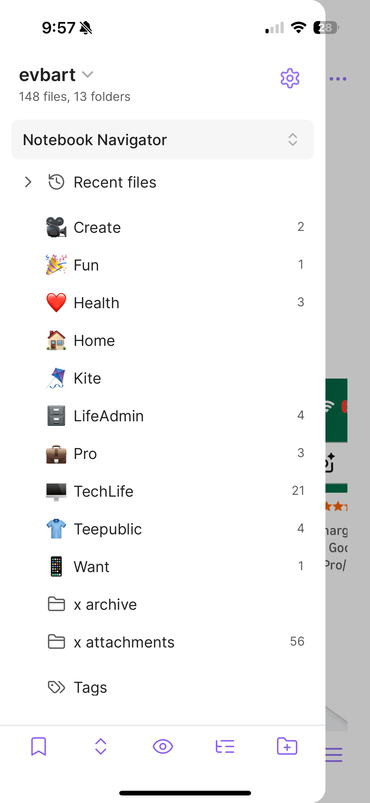 - persistent folder structure (yes, notebook navigator)