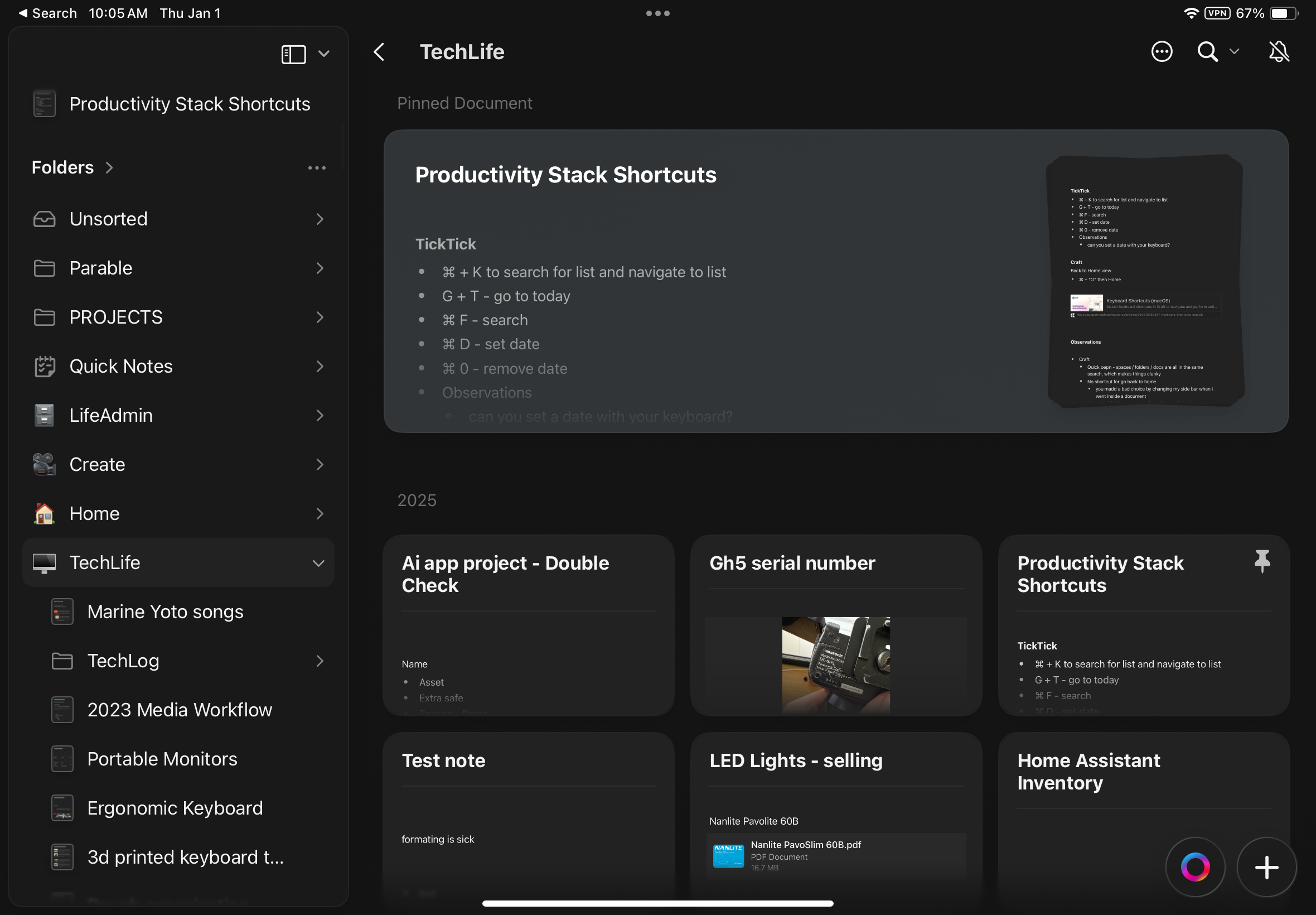 I did all this in the name of speed, and so far, I’m happy with how it's working. I do miss the “feel” and the “look” of Craft, but I no longer feel like I’m fighting with my note application to find something I jotted down last week.