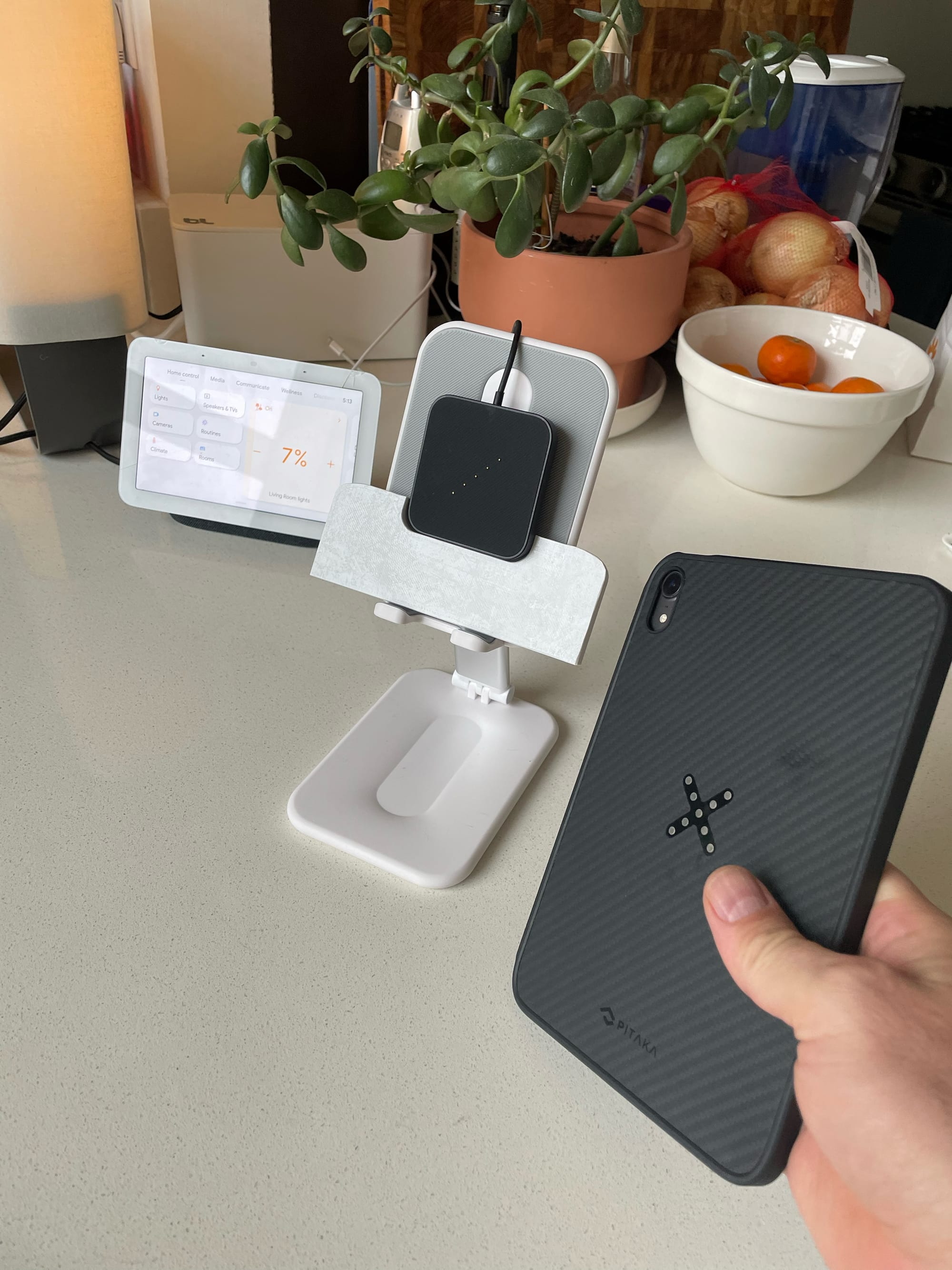 One area where I wanted to improve on my Google home hub, which was inspired by the Google Pixel tablet (which also failed to be a better hub than the Nest Hub), was that I wanted wireless charging. I also wanted to be able to grab the iPad and use it like a tablet, and then return it to its base to be able to use it as a hub.